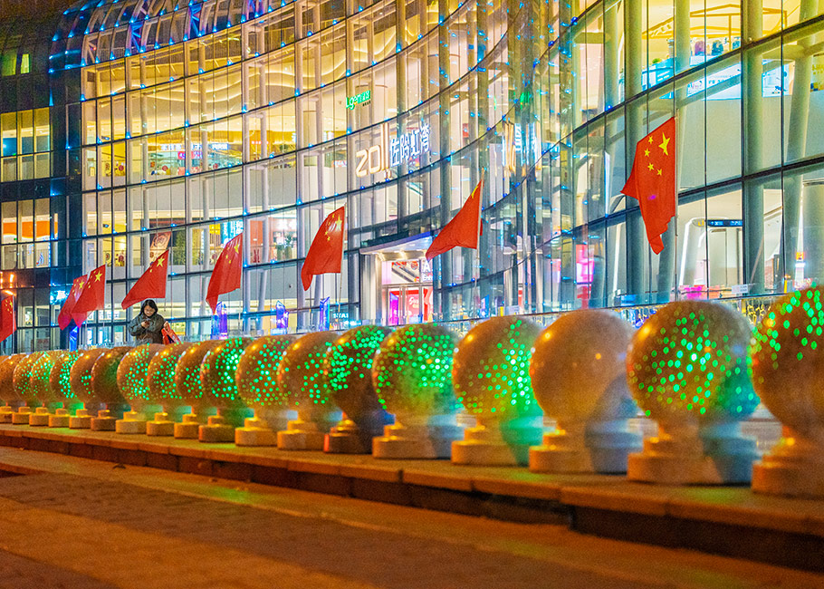 新型路障石材具有擋車功能,提升場所的形象和安全性,夜晚展現出特別絢麗的效果